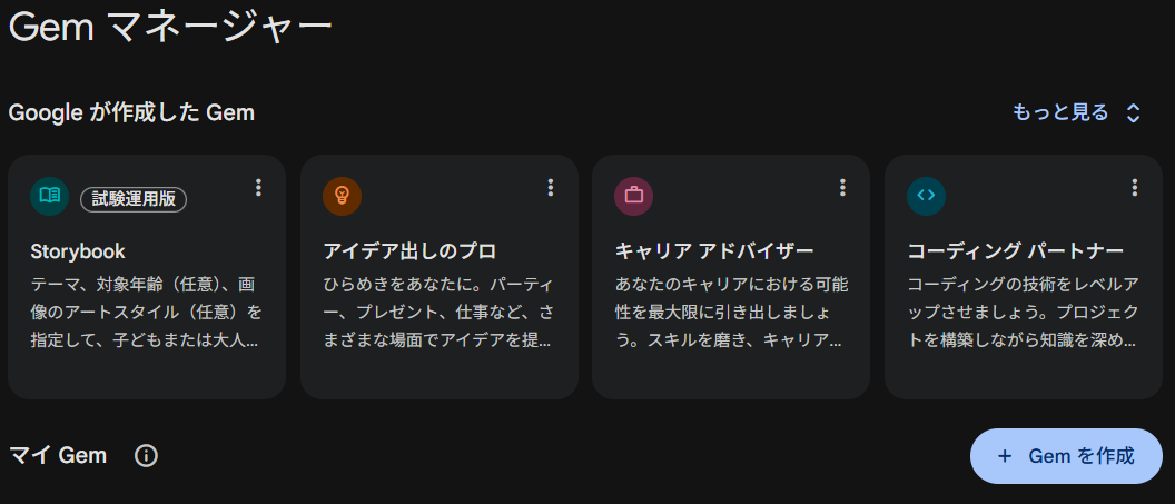 以下のような画面があり、「+ Gemを作成」ボタンを押しましょう。