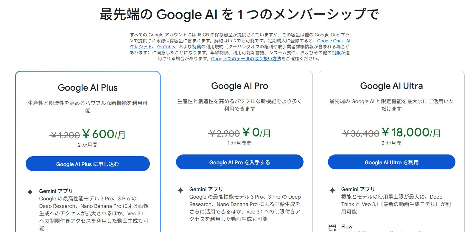 無料でも使えるGeminiですが、今は色んなプランが増えていて、かなり安くなってきてますね。