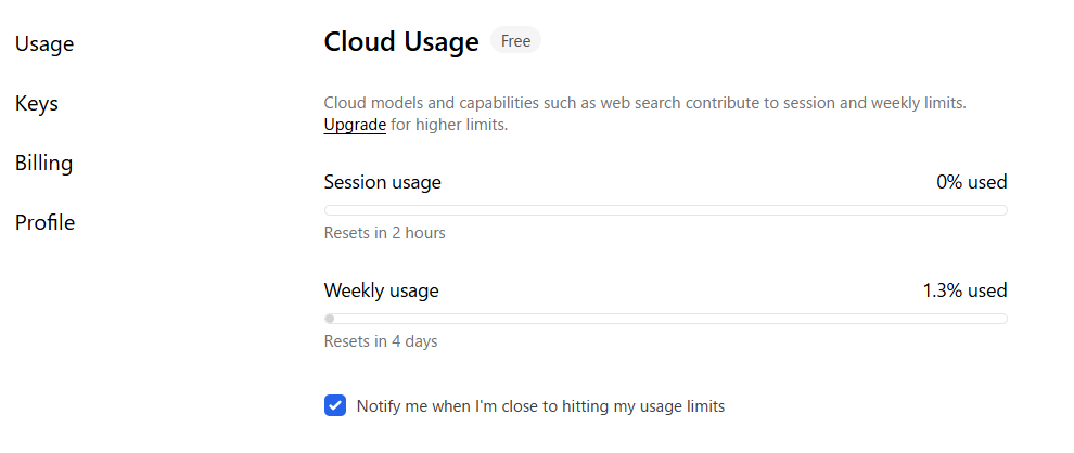ollama pull qwen3.5:cloudダウンロードが完了したら、Cloudモデルを使用するためのAPIキーを作成する必要があります。