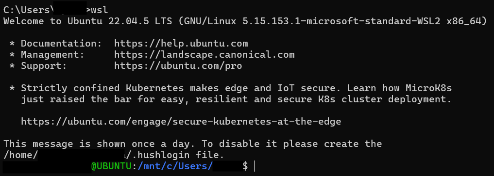 Windowsは今後コマンドプロンプト→WSLの手順を踏むことになるのでちょっと面倒です。